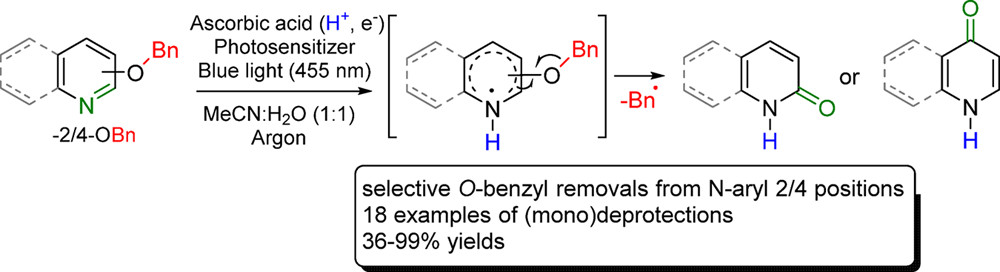 Our studies in photoredox catalysis was initiated by Photoreductive Removal of O-Benzyl Groups from Oxyarene N-Heterocycles Assisted by O-Pyridine–pyridone Tautomerism, A. Todorov et al J. Org. Chem. 2017, 82, 13756-13767