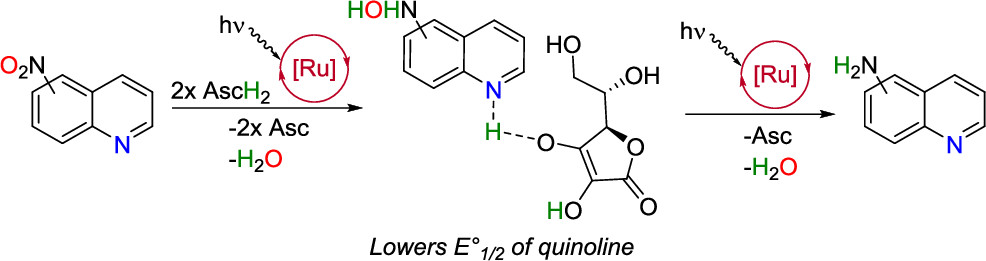 The same HAT hypothesis made us curious whether similar protonation of nitro-N-heteroaryls could promote Visible-Light-Photocatalyzed Reductions of N-Heterocyclic Nitroaryls to Anilines utilizing Ascorbic Acid as Reductant, A. Todorov at al Org. Lett. 2019, 21, 3764